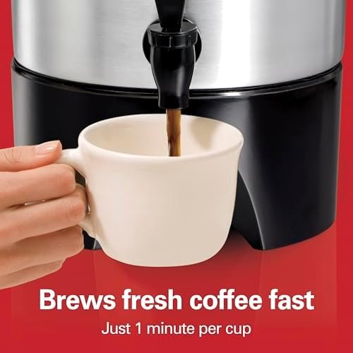 The Hamilton Beach 45 Cup Coffee Urn and Hot Beverage Dispenser is the perfect solution for serving piping hot coffee at family gatherings, parties, or any large event. With fast 1-minute-per-cup brewing and a roomy 15-45 cup capacity, you can easily cater to any crowd. Its two-way easy-press lever, ready light indicator, and clear water level marks make brewing and serving effortless. Keep your guests happy with consistently hot, delicious coffee from a trusted brand—ideal for anyone hosting big or small events.