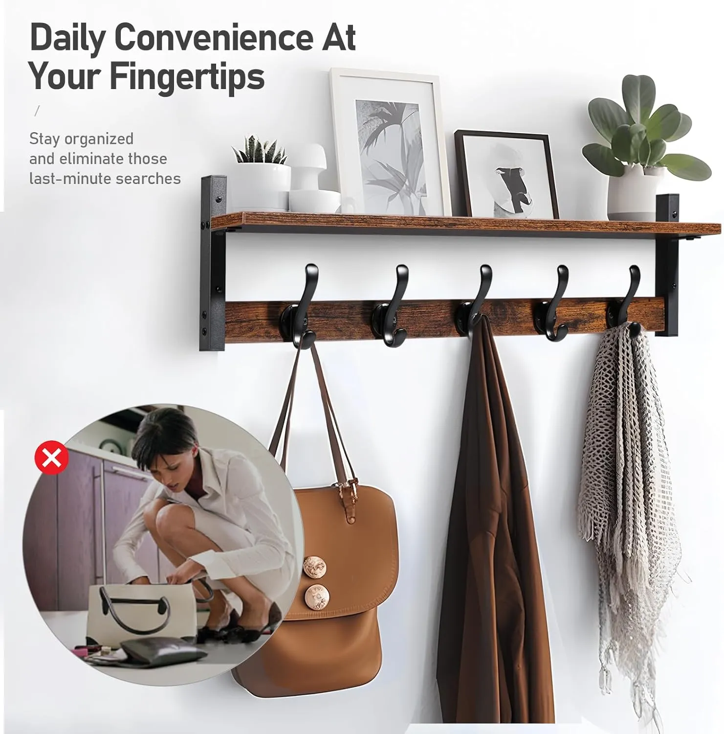 The Tatub Entryway Floating Shelf with Hooks offers a smart way to organize coats, bags, and everyday essentials while keeping floors clear. Featuring a sleek floating shelf and multiple sturdy hooks, it provides practical storage for entryways, bedrooms, or hallways. Easy to mount and designed to complement modern interiors, this wall organizer helps reduce clutter and keep frequently used items within easy reach—an ideal solution for small or busy spaces.