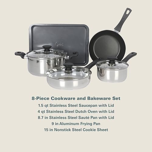 - All-in-One cookware collection: Contains everything from a 9″ frying pan and sauté pan to a Dutch oven and versatile cookie sheet. Designed for all cooktops, including induction, and dishwasher safe for most components.