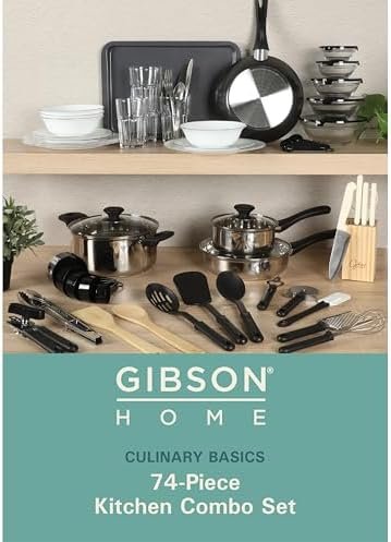 Upgrade your kitchen with the Gibson Home 74 Piece kitchen set. Get cookware, dinnerware, utensils & more. Shop now for quality and value!