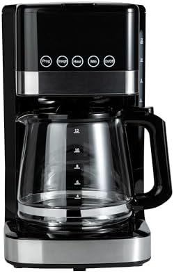 This model from Amazon Basics combines a large 12 cup coffee maker capacity with an easy-to-read touchscreen, making it simple to set your morning brew in advance. The Duralife glass carafe and removable filter basket offer both durability and effortless maintenance.