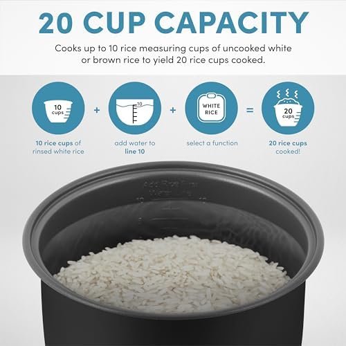 It’s also perfect for those cooking large batches, thanks to the generous 20-cup capacity. However, those who only make small servings of rice or prefer ultra-premium rice texture may prefer higher-end models. If durability is your main priority, check reviews before choosing this brand.