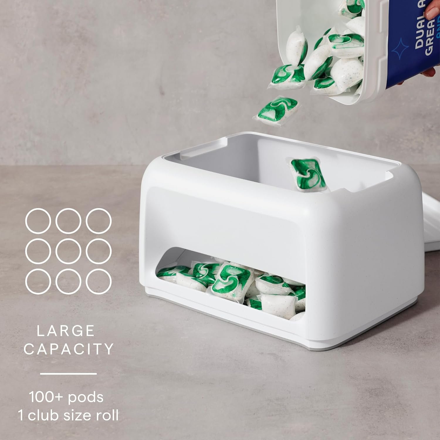 The SinkSuite Bag & Pod Dispenser is a compact kitchen sink organizer designed to store dishwasher pods, cleaning bags, and other small sink-related supplies in one convenient place. It sits neatly near your sink or dishwasher, making it easy to grab what you need while keeping your countertop clutter-free.